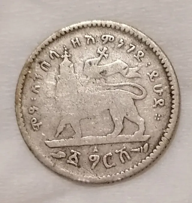 Dettagli del prodottoMoneta antica con raffigurazione di un leone e iscrizioni in lingua Ge'ez.
