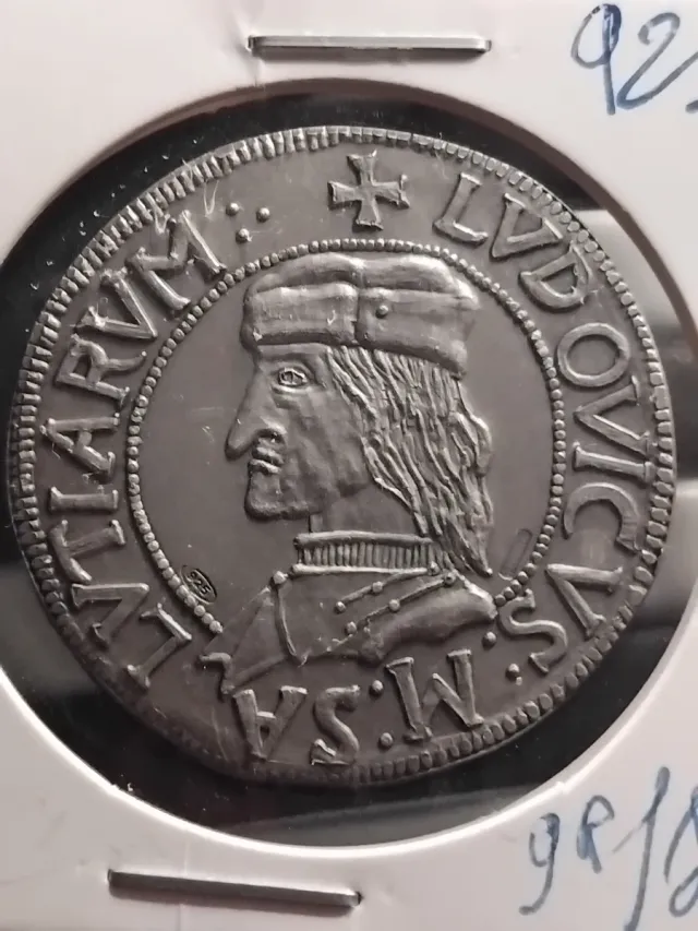 Moneta Argento riconio, antica con effigie di LVDOVICVS. - Dettaglio arg 925 . Gr 18 - Bordo perlinato.