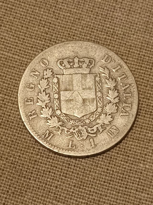 Dettagli del prodottoBellissima moneta d'argento da 1 Lira del Regno d'Italia, coniata nel 1863 e raffigurante Vittorio Emanuele II.