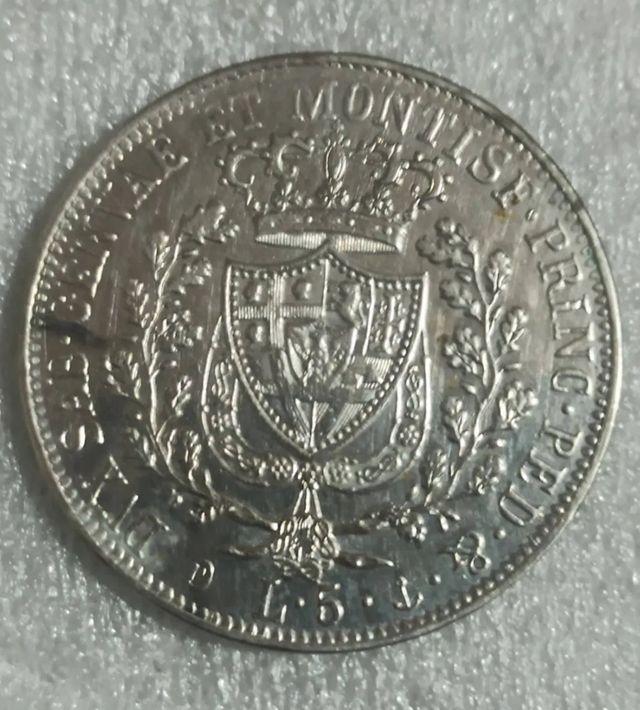 Moneta argento 5 lire 1827 Carlo Felice Genova