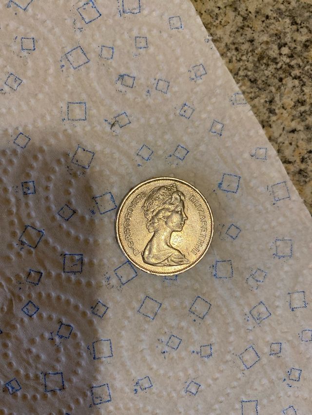 Moneta in argento con l'effigie della Regina Elisabetta. 1976 - Dettaglio del profilo della Regina. - Bordo zigrinato.