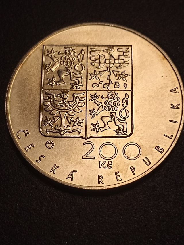 Moneta in fior di conio in argento 900 della repubblica Ceka. Valore facciale 200 corone