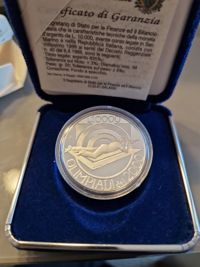 Vendo moneta argento 835 22 gr. L. 10000 celebrativa delle olimpiadi. Vendo in astuccio originale.