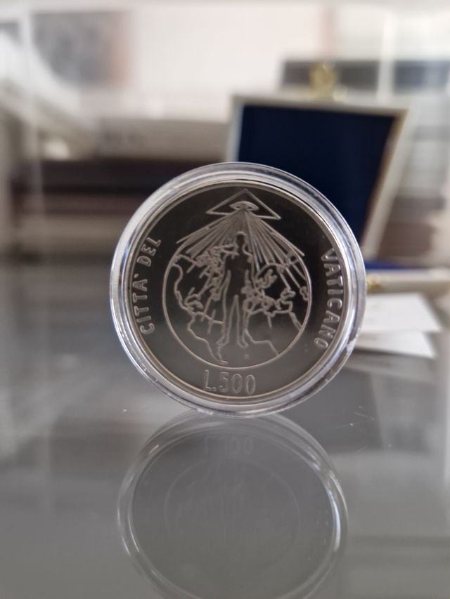 Vendo moneta L.500 argento 835 11 grammi per la celebrazione della lettera enciclica veritatis splendor. In astuccio originale