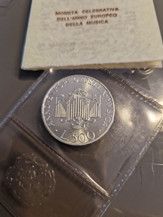 Vendo moneta argento 835 11 grammi L.500 del 1985 celebrativa dell'anno europeo della musica. Vendo in astuccio originale