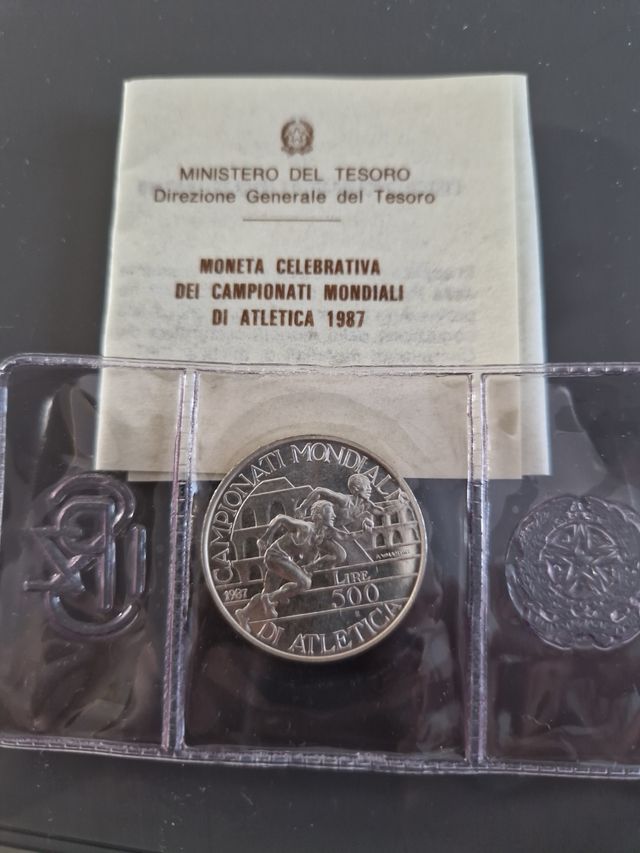 Vendo moneta argento 835 del peso di 11 grammi. L.500 per i campionati mondiali di atletica di Roma vendo in astuccio originale