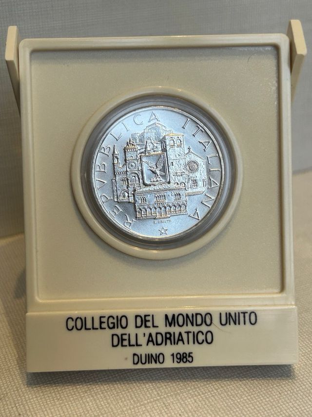 Moneta celebrativa Repubblica Italiana Lire 500 FDC, Collegio del Mondo Unito dell’Adriatico, Anno 1985, IPZS, argento 835, 11 gr