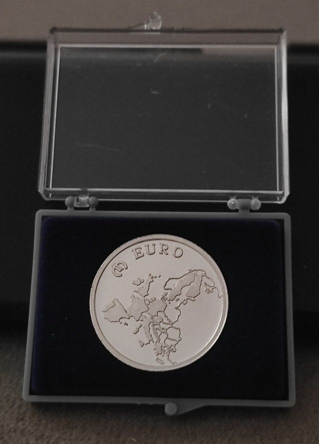 Moneta commemorativa Deutsche Bank , marzo 1998 , insieme nell' euro . Con la sua scatoletta originale . Diametro cm 3 , peso 12 gr