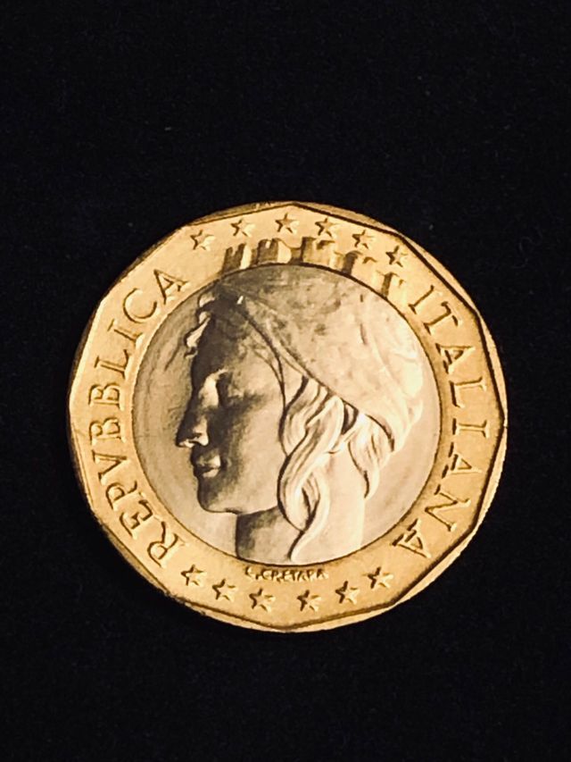 Moneta bimetallica da 1000 lire, un pezzo di storia italiana prima dell'Euro. L'esemplare mostrato risale all'anno 2000.