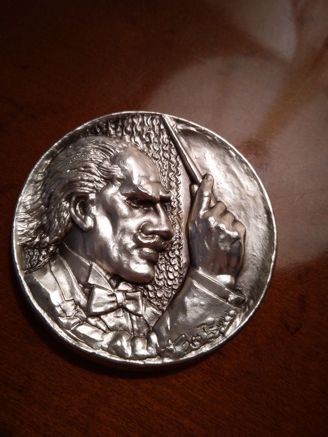 Dettagli del prodottoMoneta in argento omaggio ad Arturo Toscanini 6 cm diametro peso 152 grammi Misure del prodotto