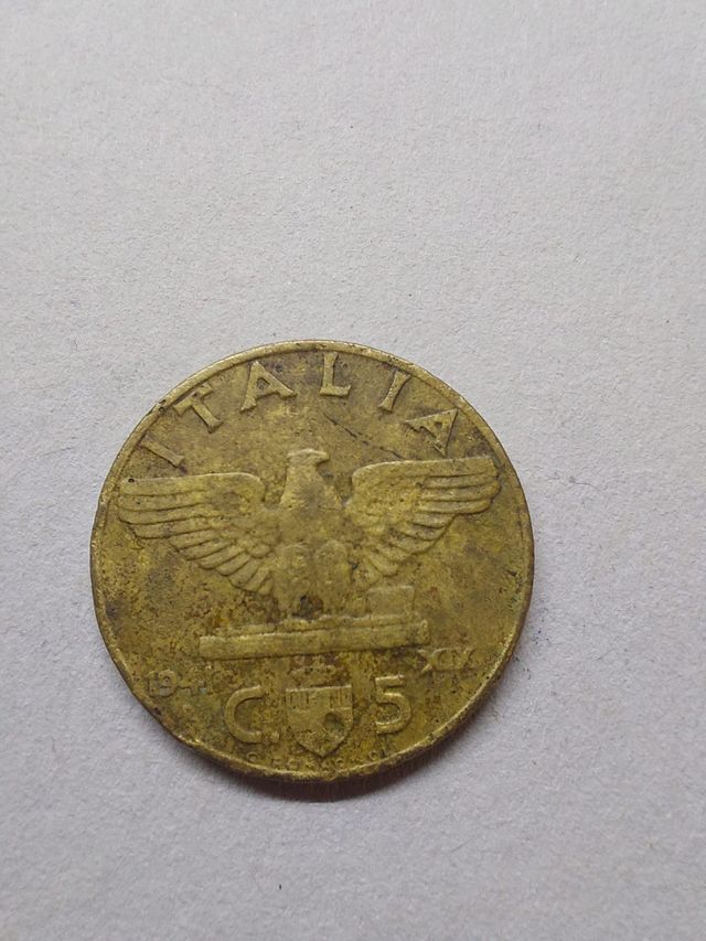 Moneta commemorativa italiana del 1941.Condizioni circolata - Dritto: Aquila sabauda con fascio. - Rovescio: Stemma sabaudo e valore 5. - Anno: 1941.