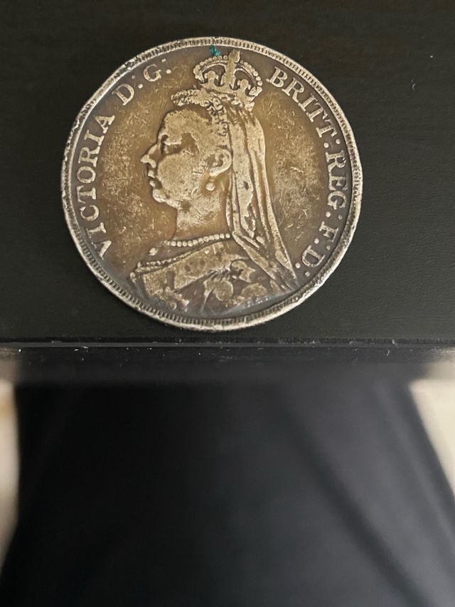 Moneta con effigie di Regina Vittoria. - Dicitura: VICTORIA D.G. BRITT: REG: F.D. - Bordo con rilievi. Moneta in argento.