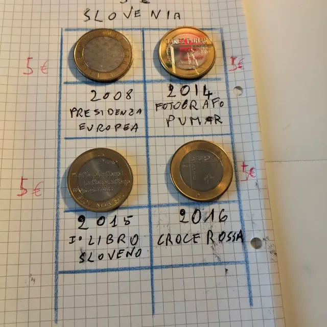 Dettagli del prodottoCollezione di monete da 3€ della Slovenia.prezzi segnati in Rosso possibile vendita separata per chi acquista le 4 monete il prezzo è di 17 €