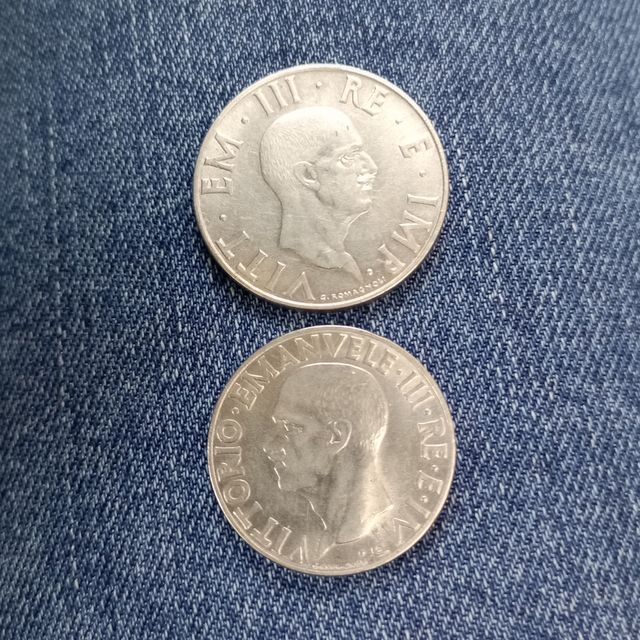 due monete 2lire,1lira , vittorio Emanuele 3,anno 1940