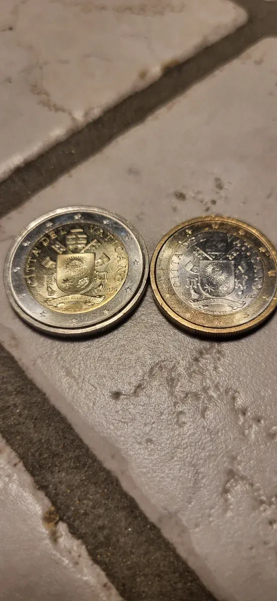 Due monete della Città del Vaticano. 2 euro anno 2025 sede vacante 1 euro anno 2025 sede vacante