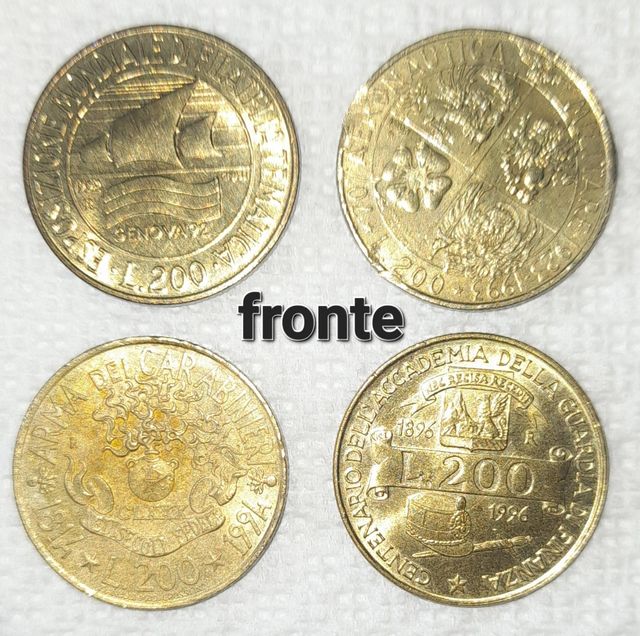 200 lire commemorative, 4 pezzi, buona conservazione.