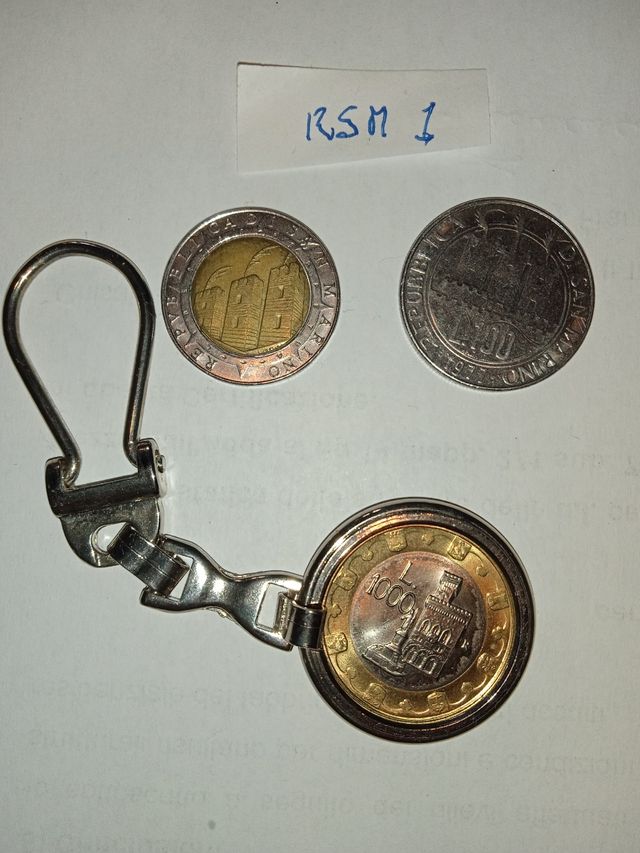 Monete della Repubblica di San Marino L.100 1977 L.500 1992 L.1000 1997 con portachiavi Come foto