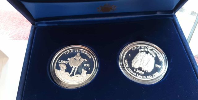 Dettagli del prodottoSet di due monete in argento del Vaticano.