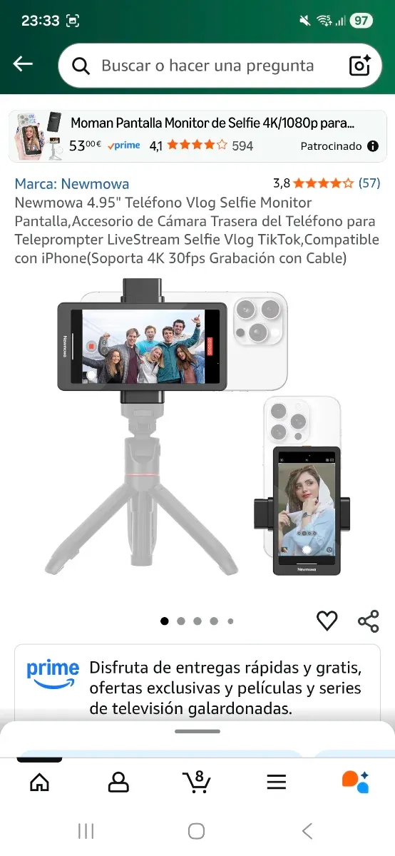 Dettagli del prodottoMonitor selfie Newmowa da 4,95 pollici, ideale per vlog e TikTok. Compatibile con iPhone. - Schermo per fotocamera posteriore. - Supporta registrazione 4K 30fps con cavo. La descrizione è stata tradotta automaticamente.