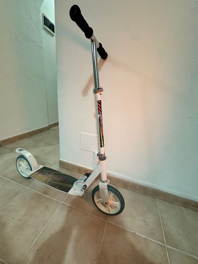 Monopattino a due ruote, ideale per spostarsi in città o per divertimento. - Manubrio regolabile in altezza. - Ruote in gomma. - Piattaforma antiscivolo.