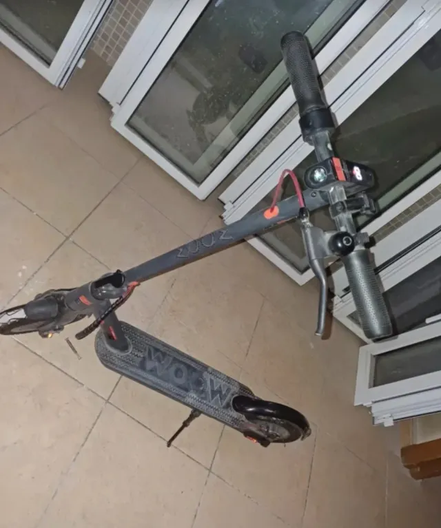 Monopattino elettrico con design moderno e accattivante. - Manubrio con impugnature antiscivolo. - Piattaforma ampia con logo. - Ruote resistenti.