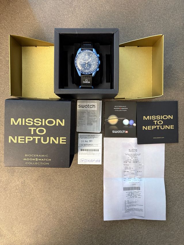 Mai indossato · Omega x Swatch · Blu e Dorato