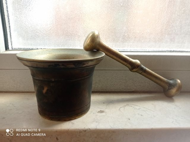 mortaio e pestello in ottone/bronzo, come da foto in ottime condizioni, pezzo unico da collezione Feel free to do your offer!