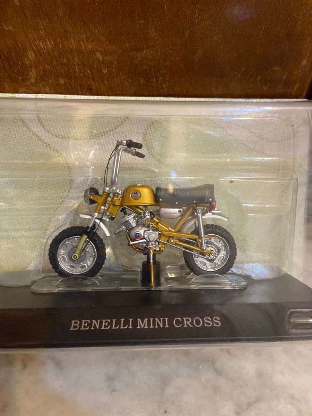 Modellino da collezione della Benelli Mini Cross. - Colore oro brillante. - Dettagli fedeli all'originale. - Supporto espositivo incluso.