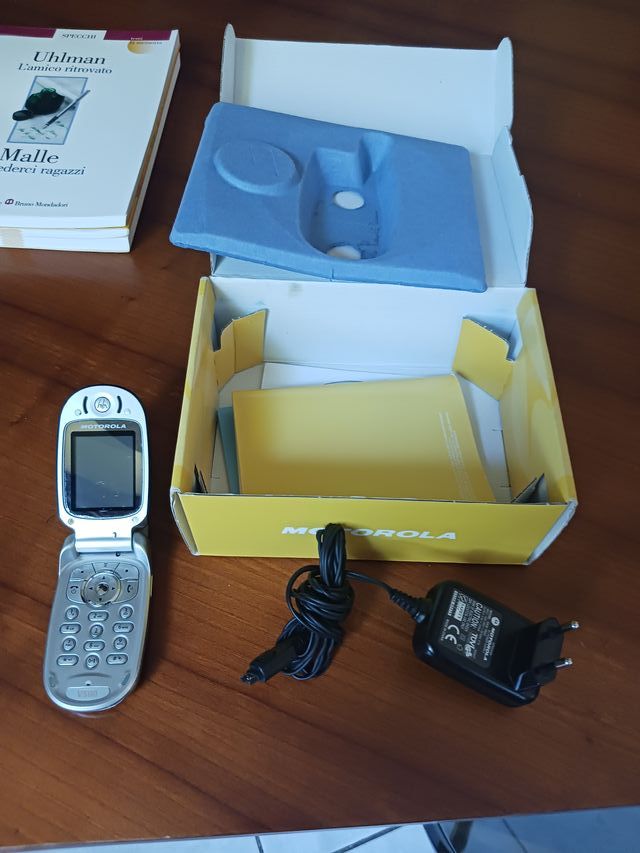 - Caricabatteria marca MOTOROLA per cellulare mod V300. Assieme al caricabatteria funzionante regalo anche il telefonino GSM V300 completo di scatola. il telefono si accende ma non sono in grado di sapere se è funzionante - costo 10 euro.