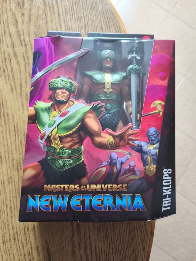 Dettagli del prodottoFigura da azione Tri-Klops di Masters of the Universe: New Eternia, Mattel. La confezione ènuova sigillata.