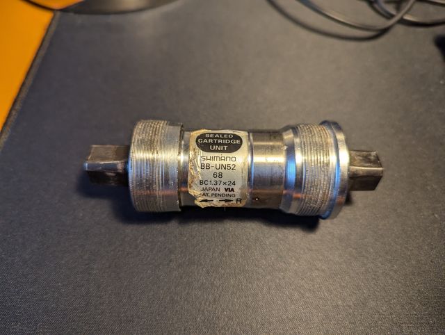 Dettagli del prodottoVendo Movimento Centrale Shimano BB-UN52 68mm. Lunghezza del perno 107,5 mm. Cuscinetti Sigillati. Perno quadro. Gira bene.