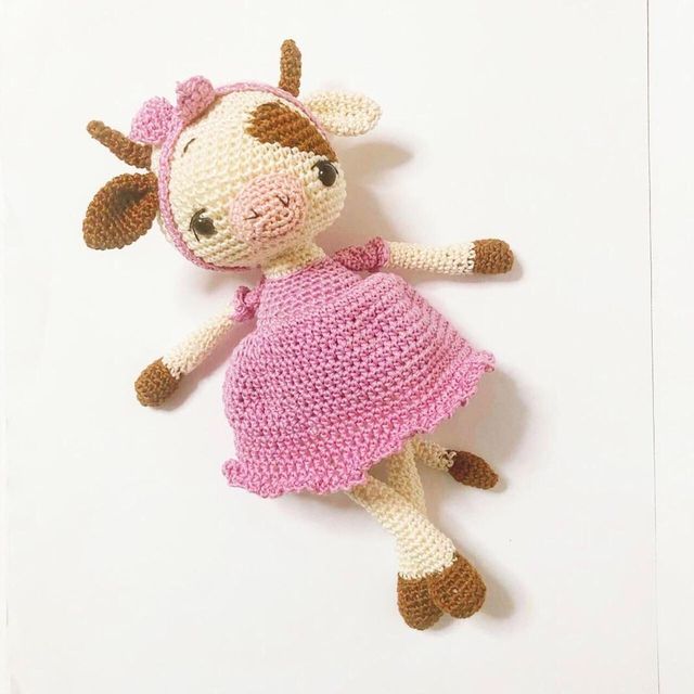 Mucca 🐮 nei colori beige e lilla, realizzata all’uncinetto, in cotone. Subito disponibile! #cow#crochet#Uncinetto#handmade#toy
