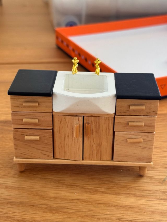 Dettagli del prodottoMobile da bagno in miniatura per casa delle bambole completamente nuovo. Design in legno con dettagli in nero. Include lavabo bianco e rubinetti dorati. Cassetti e porte funzionali, si aprono. Per gli spedizioni, l'importo minimo di acquisto è di 15€. Altre miniaturizzazioni nel mio profilo. Faccio lotto per pagare un solo spedizione. #dollhouse #casademuñecas #miniaturas #maileg La descrizione è stata tradotta automaticamente.