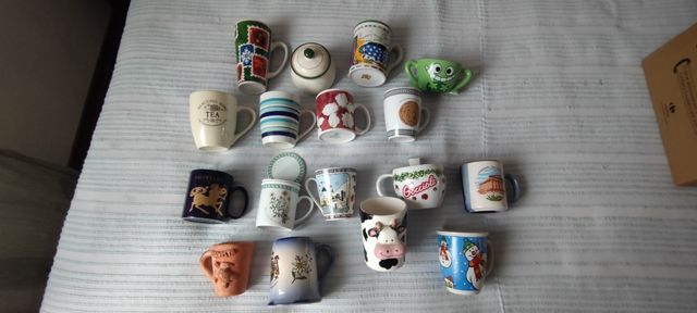 16 mugs (turistiche, pubblicitarie, decorazione) + 1 zuccheriera (info e dettagli su richiesta)