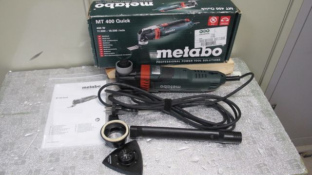 Dettagli del prodottovendo multitool MT400 QUICK METABO con accessori, tubo aspirazione, triangolo per levigare. NUOVO, euro 160 Misure del prodotto