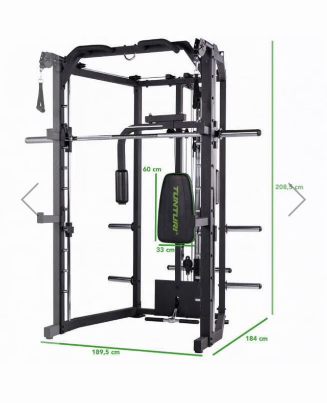 Dettagli del prodottoMacchina per palestra Multipower SM80 Deluxe. Dimensioni: 189,5 cm (larghezza) x 184 cm (profondità) x 208,5 cm (altezza). Include due dischi da 25 kg in più rispetto a quelli forniti con la macchina. Include due panche. La descrizione è stata tradotta automaticamente.