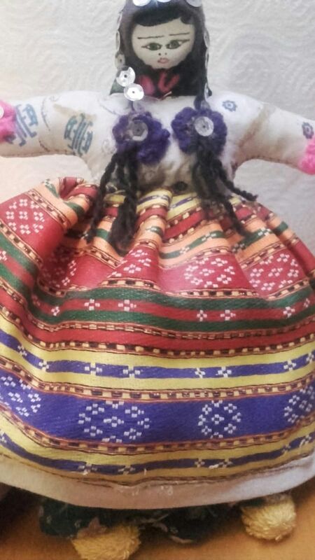 Dettagli del prodottoBambola portata dalla Turchia con il costume tipico del posto... molto colorata... e con paillettes sul cappello... la bambola con corpo di straccio e filo è alta, misura 23 cm. La descrizione è stata tradotta automaticamente.