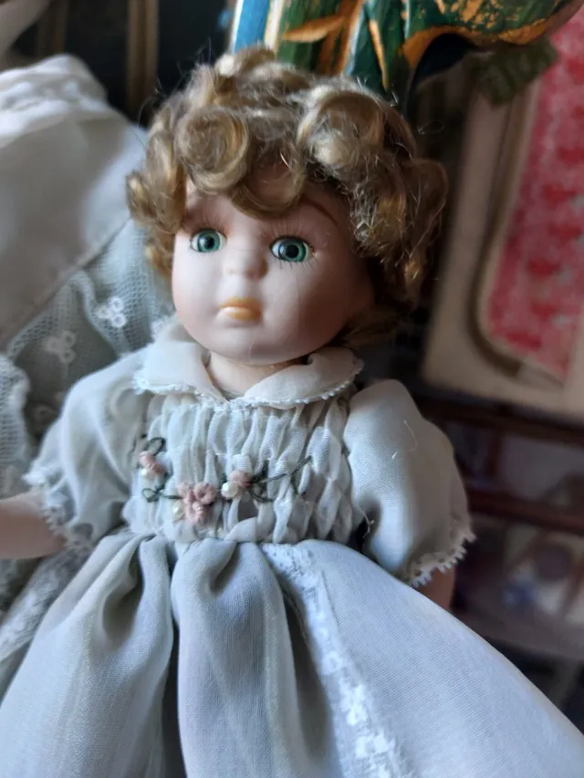 Bella bambola in porcellana antica con neonato