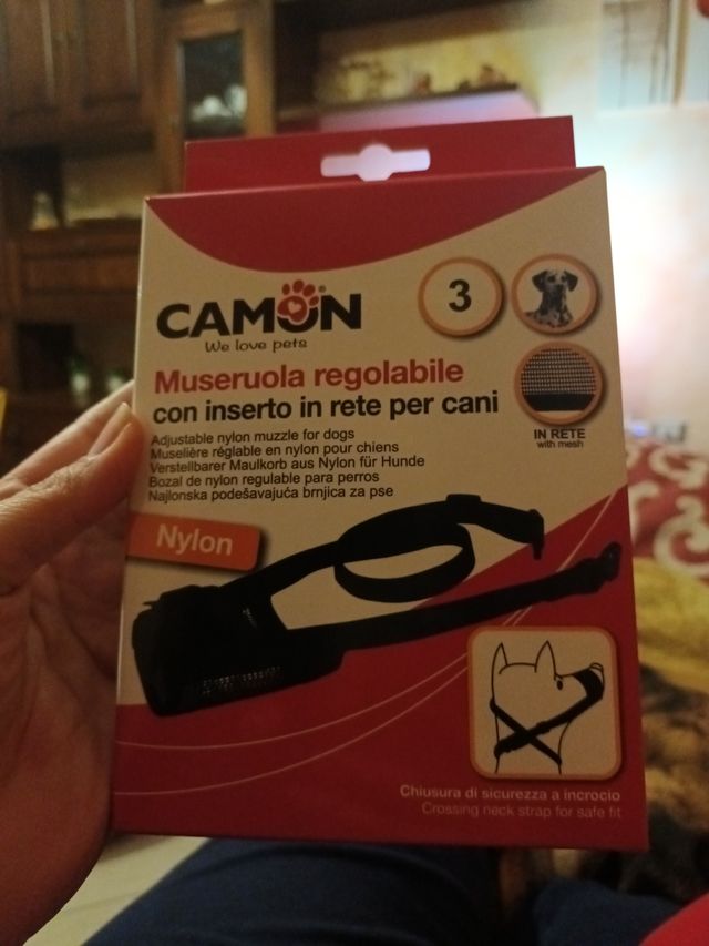 Dettagli del prodottoMuseruola regolabile con inserti in rete per cani. Morbida e confortevole con chiusura di sicurezza a incrocio. Materiale nylon, taglia 3 (L) per cani di taglia media come Dalmata, Border Collie e Bearded Collie. Marca Camon.