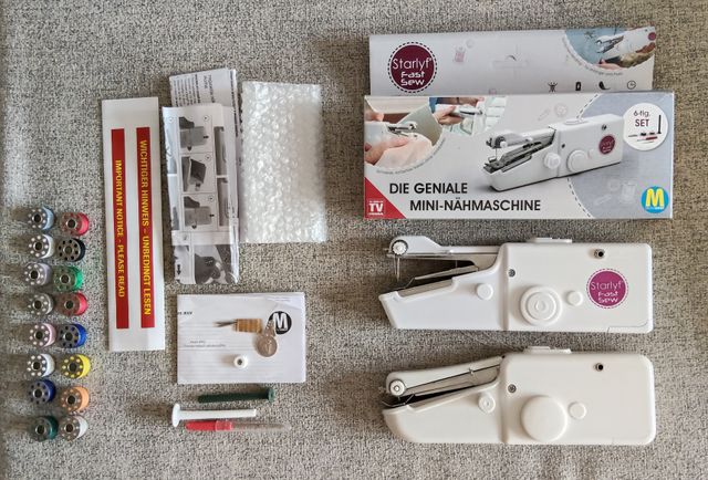 Mini macchina da cucire portatile con accessori e accessori extra. Alimentazione a batterie (non incluse)