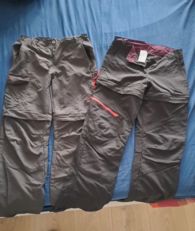 Dettagli del prodottoVendo pantaloni convertibili da trekking per bambina Decathlon, taglia 10-11 anni (EU 141-148 cm). Sono in buone condizioni, di colore grigio scuro con dettagli arancioni.