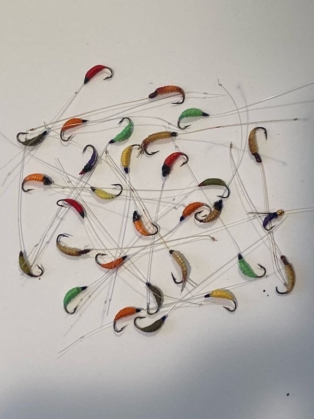 N.30 larve artificiali pernla pesca di mosche e temoli.