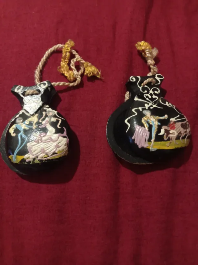 Dettagli del prodottoCoppia di nacchere spagnole originali, un pezzo vintage con decorazioni dipinte a mano.
