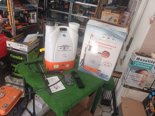 Dettagli del prodottoNebulizzatore a spalla marca AMC, modello 2 in 1.