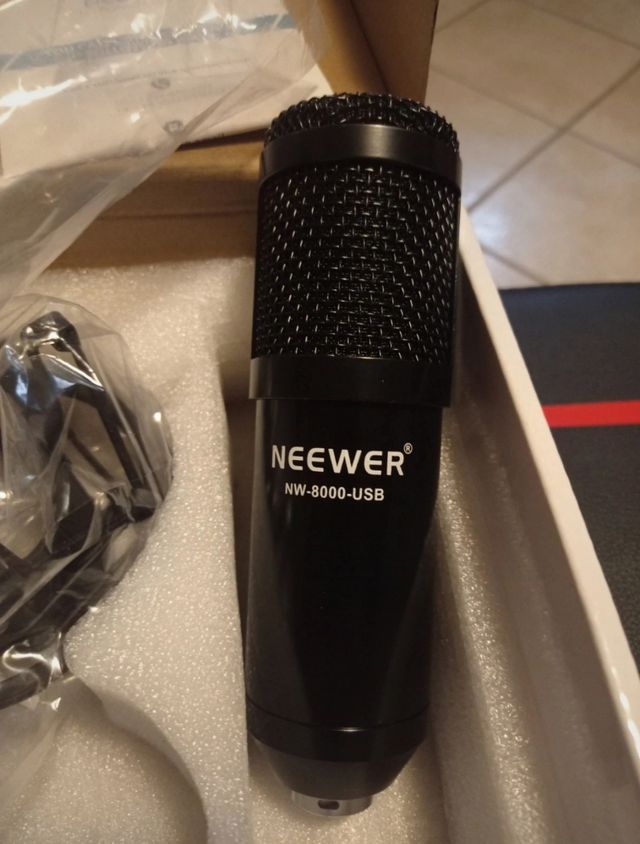 Microfono a condensatore usb Neewer BM 8000, 192 Khz/24 bit. Inclusi supporto a ragno, cavo e filtro antipop. Nuovo, aperto mai usato