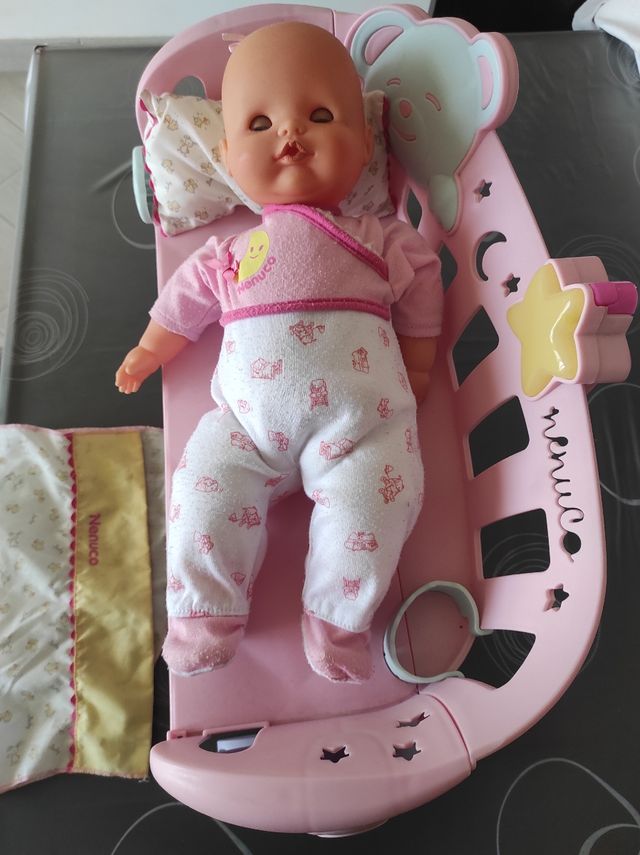 con luci e suoni e lettino a sponde da posizionare vicino al letto della bambina misure lunghezza 52 centimetri larghezza 22 centimetri altezza 30 centimetri