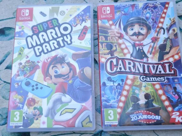Dettagli del prodottoIn vendita due scatole di videogiochi per Nintendo Switch. - Super Mario Party - Carnival Games Solo le scatole, attenzione Luigi's, mansion, Mario, kart, Yoshi, 3ds, fire emblem, diamante, platino, omega, Mario kart, game boy advance, persona, shin megami, NES, classic, Super Nintendo peach, peach 3DS, giochi, Xbox, Playstation, psx, PSone, God of War, Wario, Pokemon, Dragon Ball Super Nintendo Switch giochi Xbox Playstation psx PSone God of Time. La descrizione è stata tradotta automaticamente.