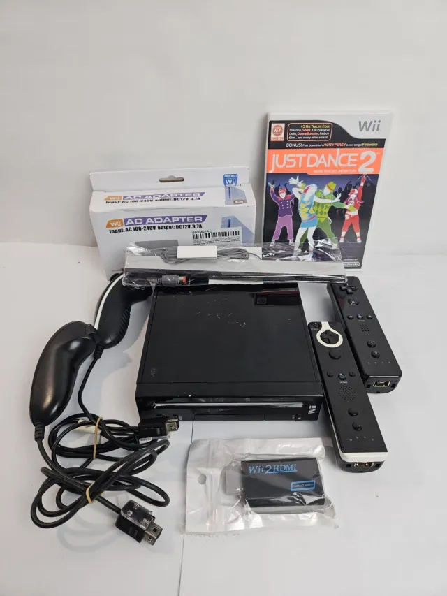 Dettagli del prodottoNintendo Wii completa nera + 2 controller con motion plus integrato e 2 nunchuk + accessori + gioco Just Dance 2
