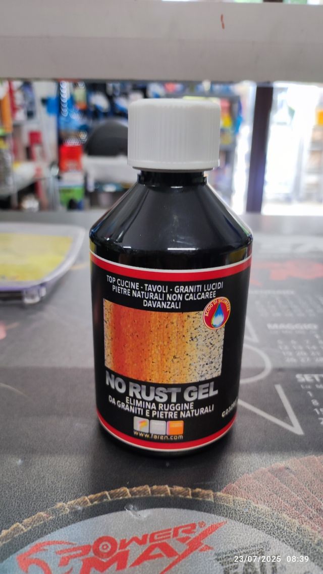 Dettagli del prodottoGel rimuovi ruggine No Rust, perfetto per piani cucina, tavoli e superfici in granito e pietra naturale. Formato da 250 ml. - Rimuove efficacemente la ruggine da graniti e pietre naturali. - Facile e sicuro da usare. - Pronto all'uso.
