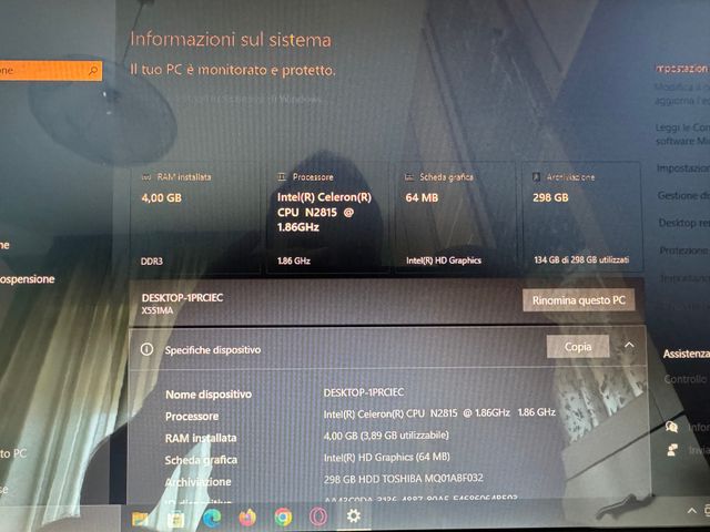 Notebook Asus Celeron 4GB RAM 298GB